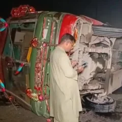 بلدیہ ٹاؤن میں تیزرفتار کوچ موٹرسائیکل پر الٹ گئی، زد میں آکر…