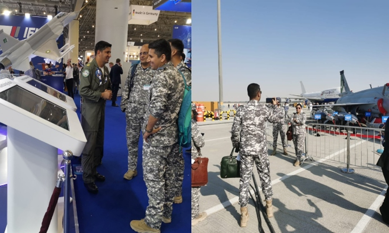 ایئر شو کے دوران بھارتی فضائیہ کے اہلکاروں نے پاکستانی پویلین کا دورہ کیا اور جدید ٹیکنالوجی سے لیس پاکستانی ہتھیاروں اور طیاروں میں دلچسپی ظاہر کی۔