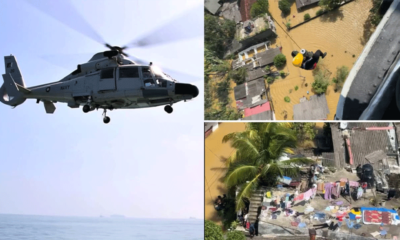 سری لنکا میں سائیکلون ’دتواہ‘ سے متاثرہ علاقوں میں پاک بحریہ کے جہاز پی این ایس سیف کی امدادی سرگرمیاں جاری ہیں۔ امدادی کارروائیوں کے دوسرے روز جہاز پر تعینات Z9EC ہیلی کاپٹر نے کولمبو اور اطراف کے شدید سیلاب زدہ علاقوں میں متعدد مشنز سرانجام دیے۔