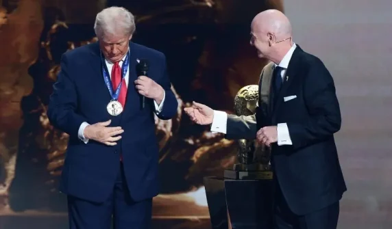 برطانوی خبر رساں ادارے دی گارجین کے مطابق جمعے کو امریکی صدر ڈونلڈ ٹرمپ کو فیفا کی جانب سے پہلا ’’امن ایوارڈ‘‘ دے دیا گیا۔ ورلڈ کپ 2026 کے ڈرا سے قبل واشنگٹن میں ہونے والی تقریب میں فیفا صدر جیانی انفینٹینو نے ٹرمپ کو ’’دنیا میں امن و اتحاد کے فروغ‘‘ پر سراہا۔