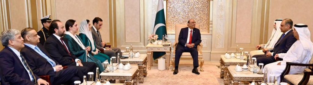 صدر زرداری نے عزت مآب شیخ محمد بن زاید النہیان کی دور اندیش قیادت کو خراج تحسین پیش کیا اور متحدہ عرب امارات کے رواداری اور انسانی بھائی چارے کے قومی وژن کو سراہتے ہوئے کہا کہ اس نے ملک کو متنوع برادریوں کے درمیان ہم آہنگی کی ایک اہم عالمی مثال کے طور پر پیش کیا ہے۔ انہوں نے 200 سے زائد قومیتوں کے درمیان اتحاد اور باہمی احترام کو فروغ دینے میں متحدہ عرب امارات کی کامیابی کو سماجی ہم آہنگی کے ایک زبردست نمونے کے طور پر سراہا۔ صدر زرداری نے کہا کہ یہ اقدار بین المذاہب ہم آہنگی، سماجی شمولیت، اور ثقافتی اور مذہبی تنوع کے احترام کے لیے پاکستان کے اپنے عزم کے ساتھ مضبوطی سے گونجتی ہیں۔ بھٹو زرداری، ایم این اے؛ چیئرمین پیپلز پارٹی بلاول بھٹو زرداری، وفاقی وزیر داخلہ و انسداد منشیات سید محسن نقوی؛ اور متحدہ عرب امارات میں پاکستان کے سفیر بھی موجود تھے۔