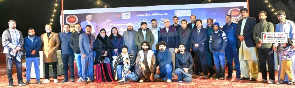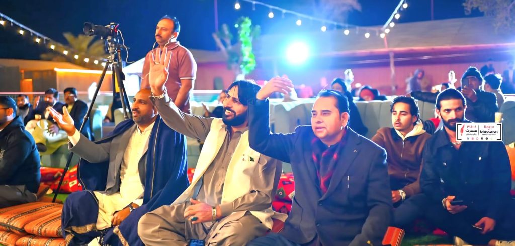 صحرا کی اس خوبصورت شام کی صدارت ہم سب کے استادِ ڈاکٹر صباحت عاصم واسطی نے کی، جن کے علمی وقار، ادبی مرتبے اور ہمہ گیر شخصیت نے سرد رات کی اس صحرائی محفل کو وقار و جلال بخشا۔ نظامت کے فرائض مسرت عباس ندرالوی اور ریحان عباسی نے نہایت خوش اسلوبی، متانت اور سلیقہ مندی کے ساتھ انجام دیے۔ ممتاز نعت گو شاعر و نعت خوان مقصود احمد تبسم کے ساتھ ساتھ معروف شاعر اختر ملک نوجوان شاعر فرزاد علی زیرک ، ندیم احمد شہزاد اور ڈاکٹر کاشف رفیق مہمانانِ خصوصی کے طور پر سٹیج کی زینت بنے۔ مترنم شاعر شہباز شمسی اور ملک محمد عرفان اس محفل کے مہمانِ اعزاز رہے جب کہ سٹیج پر خواتین کی نمائیندگی کرتے ہوئے کنول ملک مہمانِ خصوصی اور حنا عباس مہمانِ اعزاز تشریف فرما تھیں۔مقامی شعرا کے ساتھ اس بار لندن سے تشریف لائے ہوئے معروف شاعر عادل مظفرپوری بھی خصوصی طور پر شریک ہوئے۔ صحرا میں شام کی سوچ کے خالق اور اس کو پایہء تکمیل تک پہنچانے والے ہمہ گیر شاعر رضا احمد رضا اور بزمِ مسرت انٹرنیشنل کے فاونڈر و چیرمین مسرت عباس ندرالوی ۔ایچ آر کریٹیو موورز کے سی ای او حافظ حسن رضا کھوکھر اور انجینئر خرم شہزاد نے شعرائے کرام کا اسٹیج پر استقبال کیا اور انہیں سیون آر کنسلٹینسی کے طرف سے تحائف اور بزمِ مسرت انٹرنیشنل کی طرف سے اعزازی شیلڈز پیش کی گیئں۔