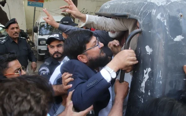 ترجمان جماعت اسلامی کے مطابق پریس کانفرنس کے دوران رہنماؤں کو گرفتار کیا گیا، پولیس نے الیکشن کمیشن آفس کے باہر تمام دکانیں اور ہوٹل بھی بند کرادیے۔