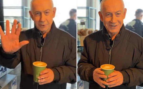 نیتن یاہو کو ایک کافی شاپ میں کافی آرڈر کرتے ہوئے اور پیتے ہوئے دیکھا جاسکتا ہے، اسرائیلی میڈیا کے مطابق مذکورہ شاپ یروشلم ہلز میں واقع ہے۔